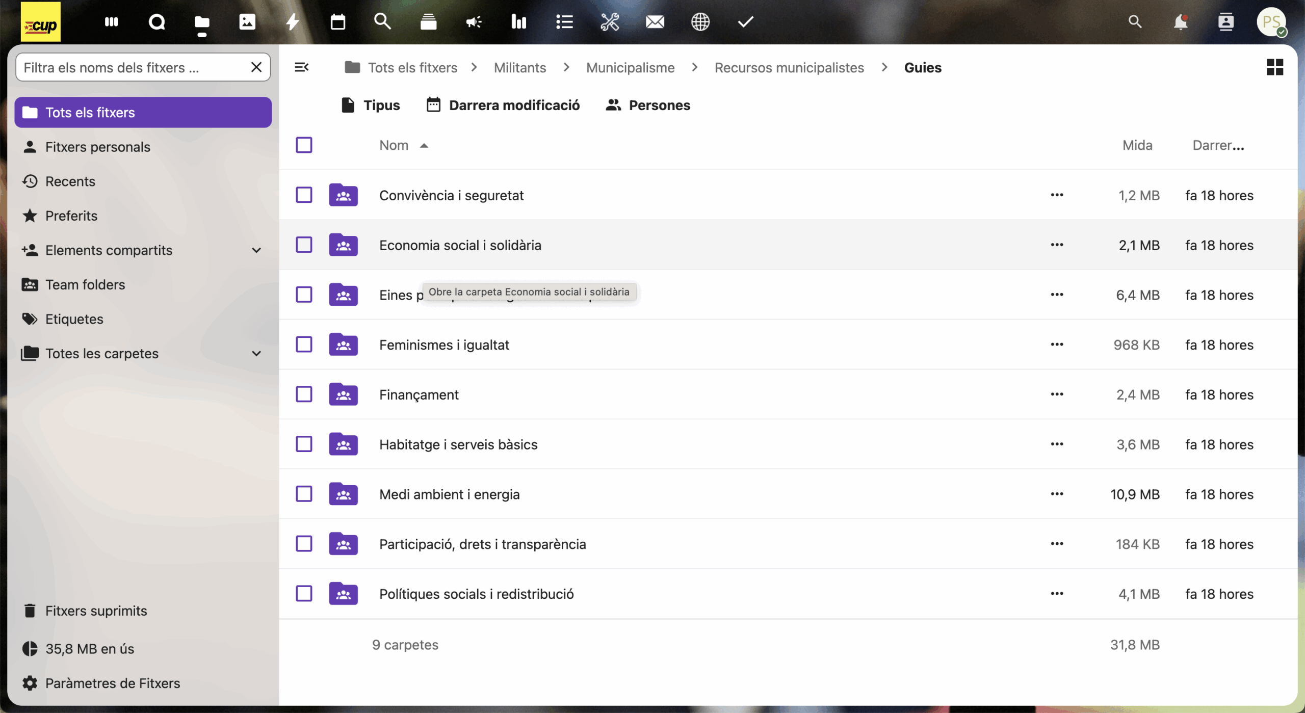 Des de la Secretaria de Municipalisme hem creat un nou espai compartit per facilitar la feina del conjunt de la militància implicada en l’àmbit municipalista. Es tracta d’un repositori viu on hi trobareu mocions, guies, plantilles i altres recursos útils per a l’acció institucional i l’activitat política local.