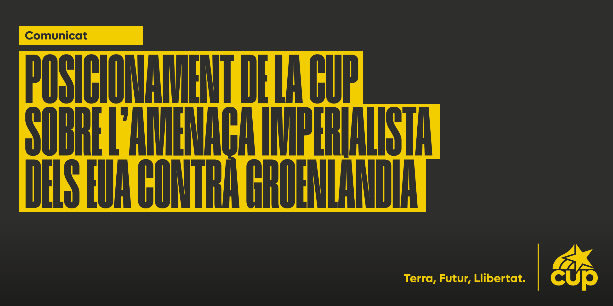 La CUP seguim apostant per una resposta internacionalista basada en la solidaritat entre pobles oprimits, el desmantellament de les estructures militars imperialistes i el respecte i l’exercici lliure del dret d’autodeterminació. La situació de Groenlàndia ens interpel·la directament com a poble que també veu negat el seu dret a decidir. Davant d’un món marcat per la competència autoritària, seguim apostant per una pau democràtica, justa ecologista, que posi la vida i la sobirania dels pobles al centre, i no els interessos geopolítics de les grans potències.
