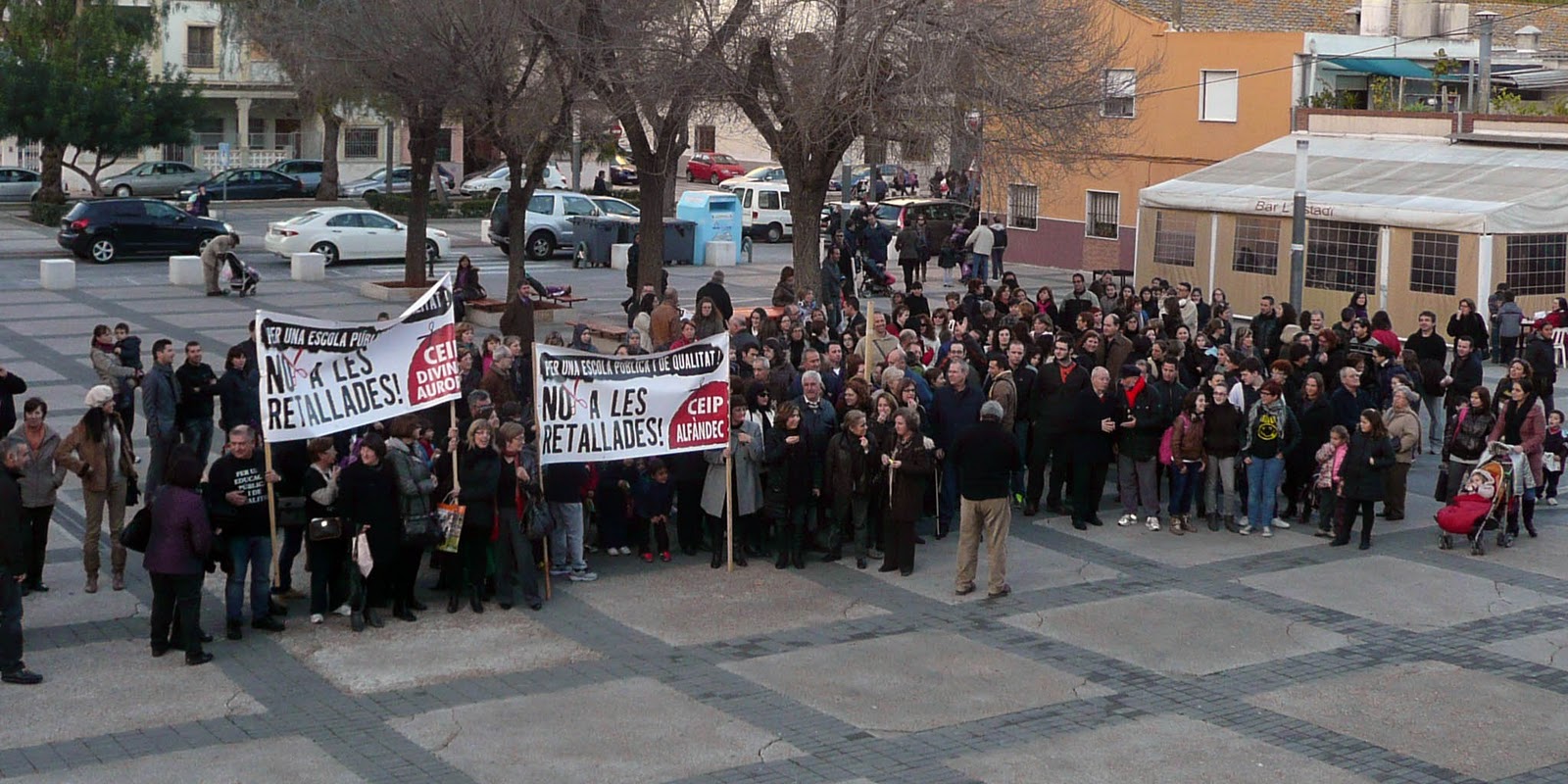 S’han concentrat aquesta vesprada en la Plaça del Futbol per fer palés el seu rebuig a les mesures de retall aprovades en solitari pel govern del PP de la Generalitat. [LA COTORRA DE LA VALL]