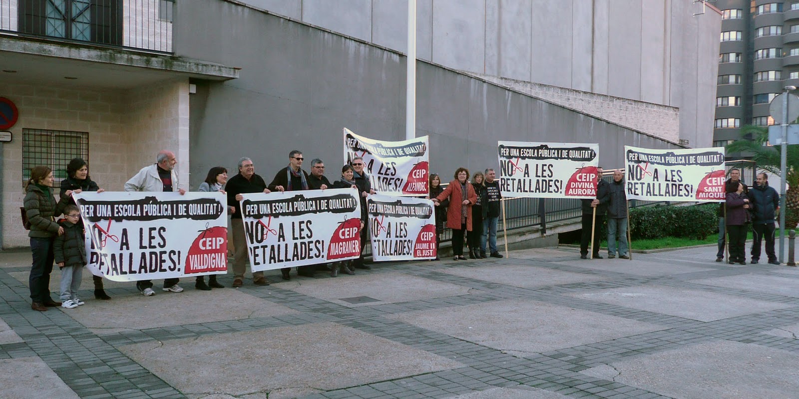 AMPA IES La Valldigna [facebook] HUI DIJOUS, 19 DE GENER, A LES 17,30 HORES, CONCENTRACIÓ AL PASSEIG COLON DE TAVERNES, DAVANT DEL POLIESPORTIU. TOTA LA COMUNITAT EDUCATIVA DE TRES POBLES DE LA VALLDIGNA CONTRA LES RETALLADES DE LA CONSELLERIA D’EDUCACIÓ. VINE I DIGUES NO A LES RETALLADES.